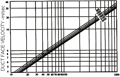 例如: 假設氣流量為5M/SEC最大可能的壓強損失為1OOpa,再假設長為1200mm的消聲器能達到隔聲要求。 右圖中 , 水準軸上為100Pa, 消音器長為1200mm,可求得管道速度為14m/seC。給出管道面積為: