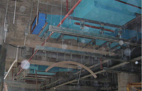 在减震吊架中下加装10mm厚的阻尼隔振垫,可以大大减少高频短路和固体传声传递。