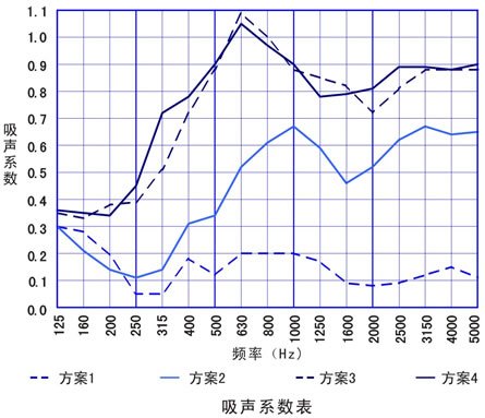 方案4.试件安装32kg/m3,25mm厚聚酯纤维吸音棉+9mm聚酯纤维吸音板。