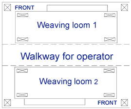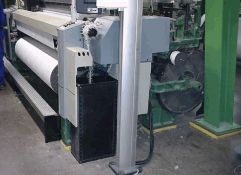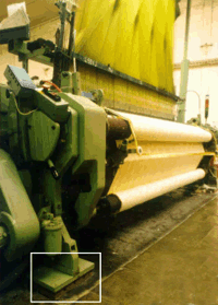 Every loom (type = Picanol, ca. 3 tons, air driven) turning at a slightly different speed between 600 and 700rpm (delta = min. 5rpm), to avoid synergies