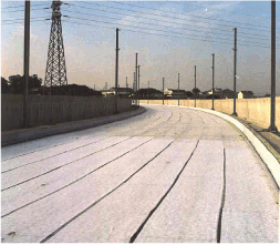 (Usually an identical ballast mat is used to treat the vertical sides of the ballast pit)