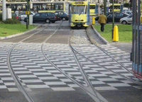 The -MODULIX? system consists of prefabricated reinforced concrete modules containing already a maximum of elements (rails, slab, traffic separation, platform edge, road paving/covering, eventual transition stiffness elements, ...).