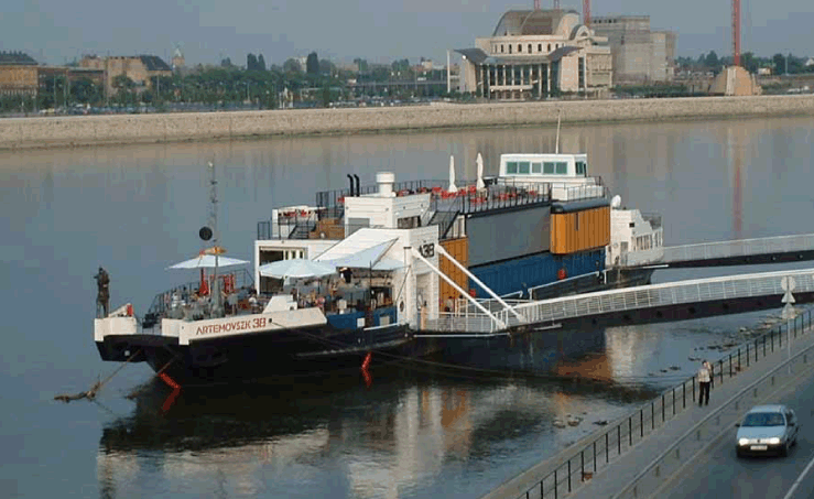 Artemovsk 38 (A38) is a new floating meeting place in Budapest, on the Danube river, close to two universities and vibrant campuses. The thoroughly refurbished former rock transporting barge now accomodates a restaurant, a bar and a 160 sqm concert room.